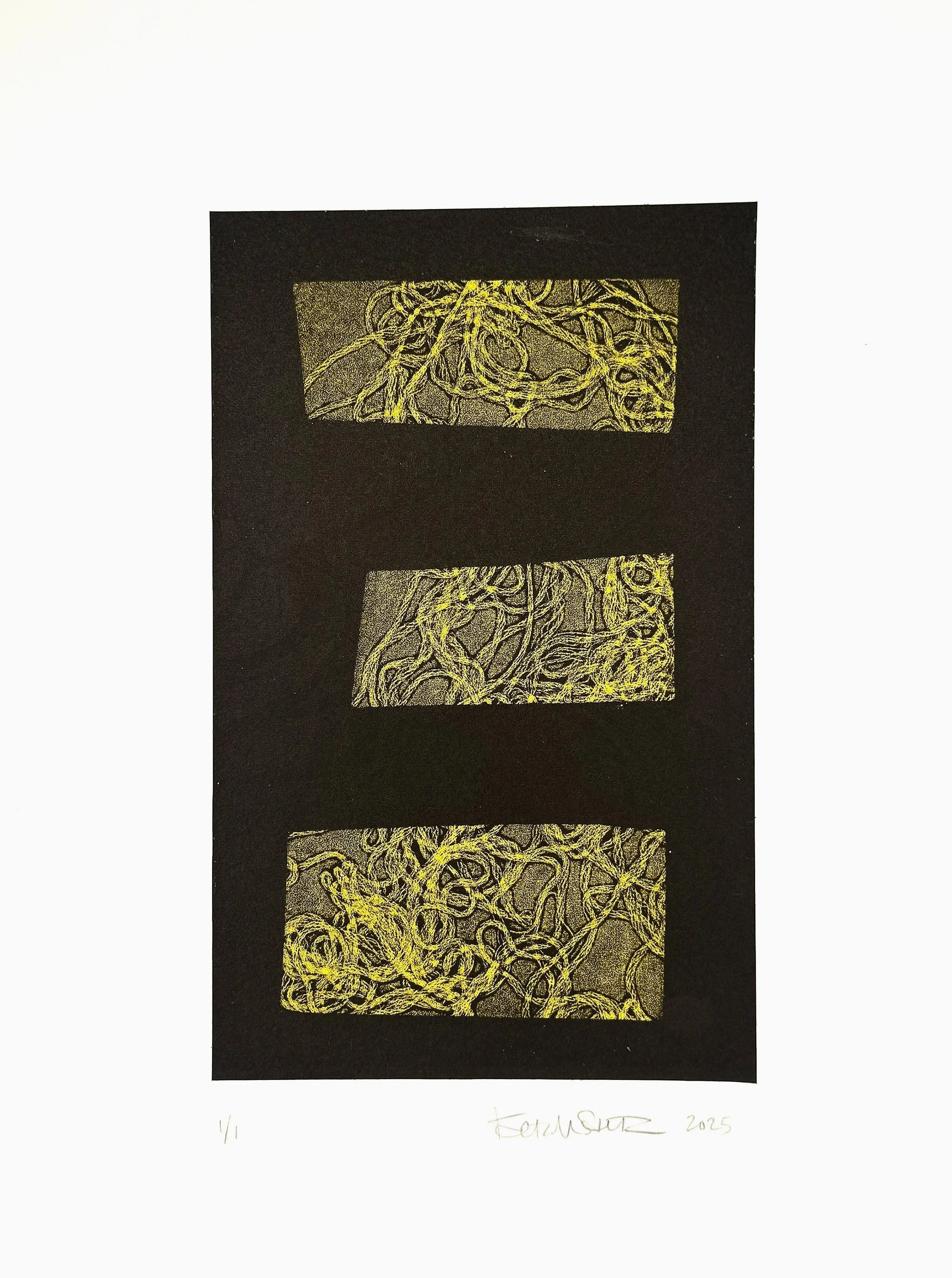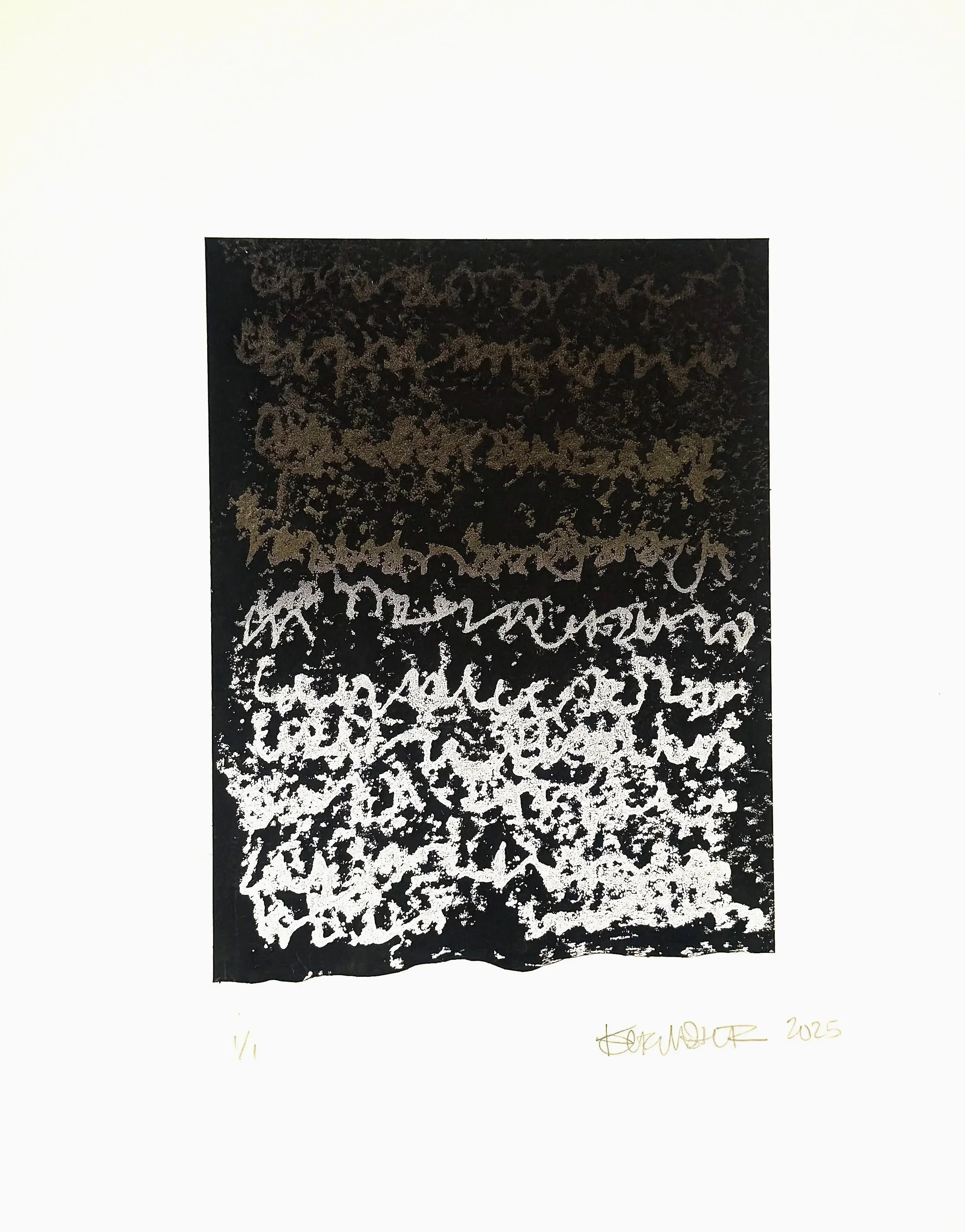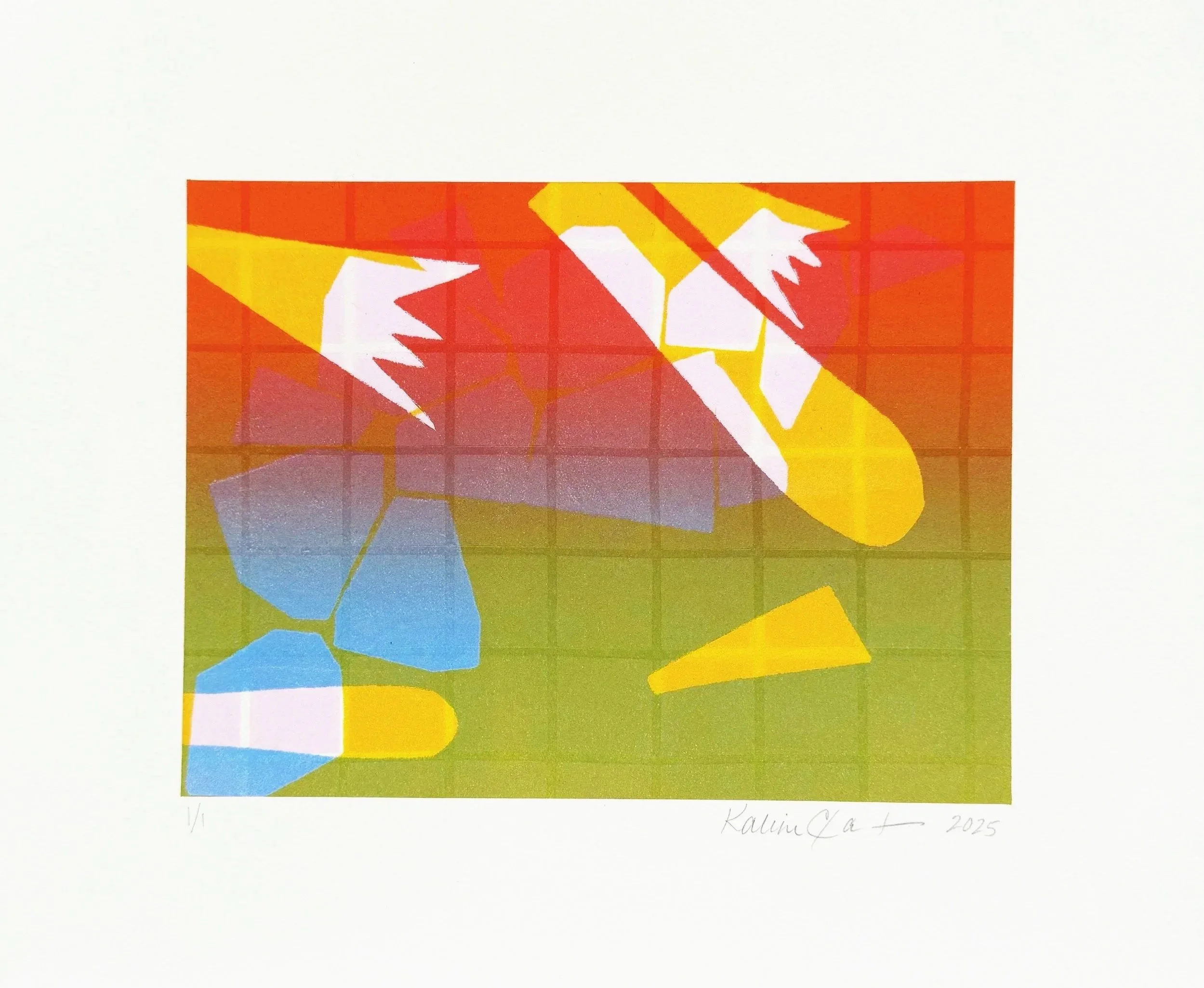 During the month of August 2025, 7 artists came to Chroma Printmaking Residency to work with in-house printer, Kristin Sarette, to create small series of monotypes and monoprints. These works are being sold as a fundraiser for the Friends of Chroma Scholarship program. Our goal is to make accessibility to the residency easier to achieve. With your help, we will be able to offer a more robust curriculum of residencies, workshops, and symposia.