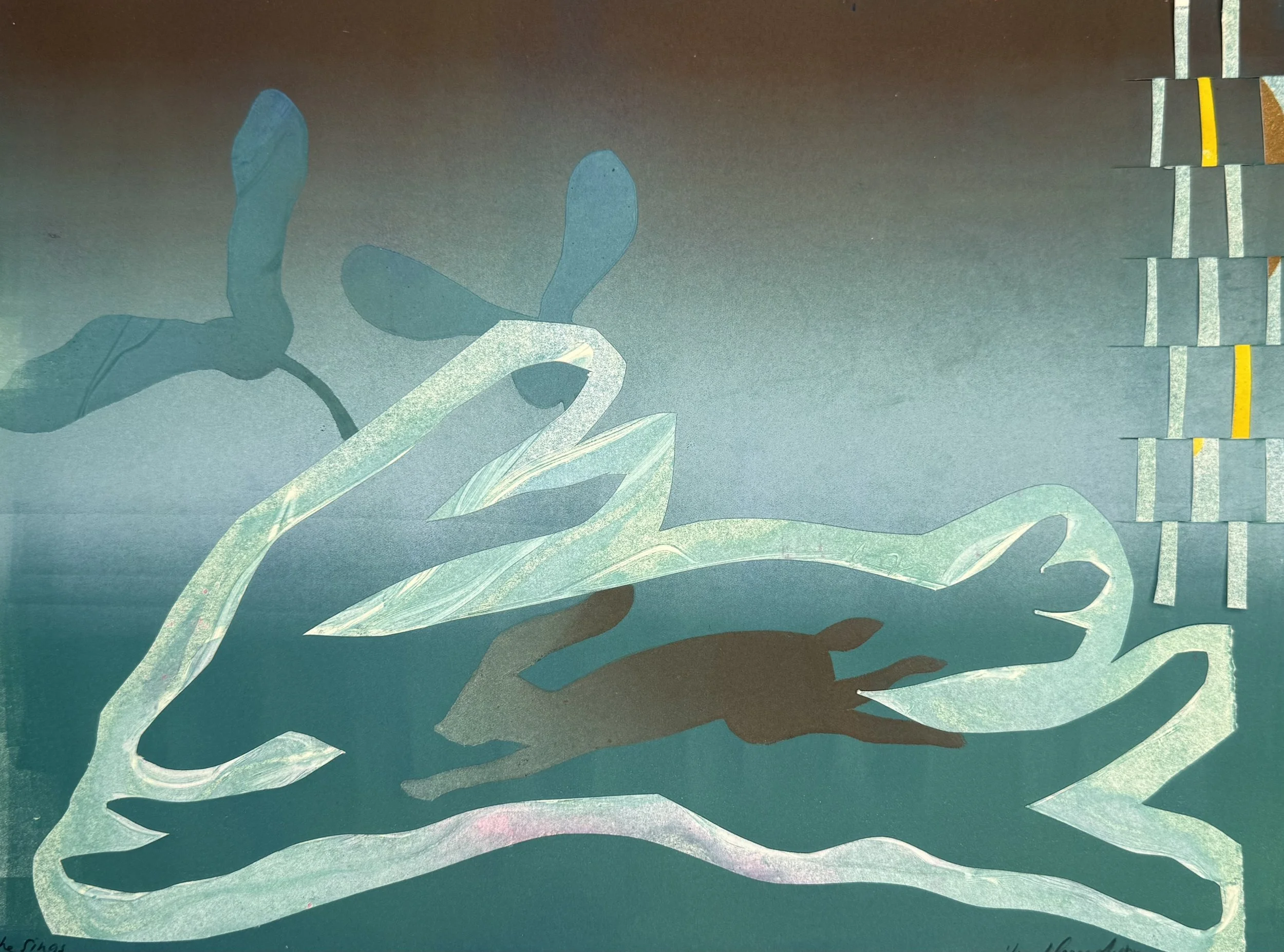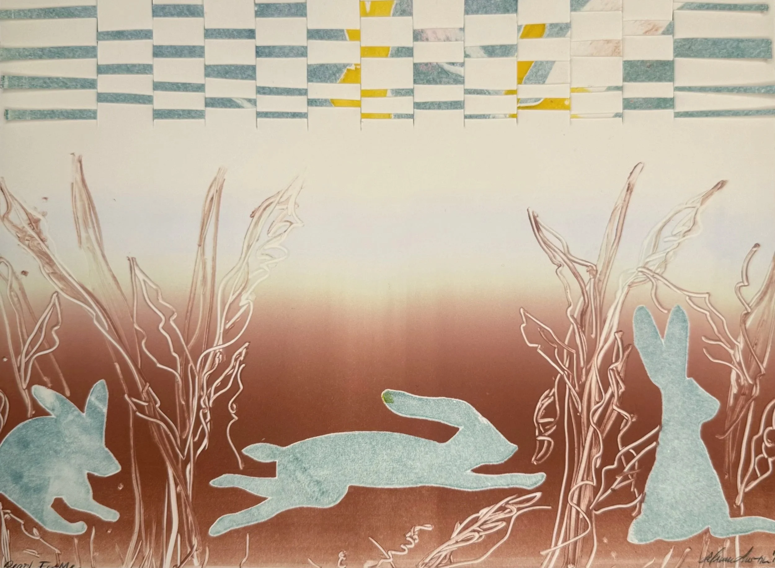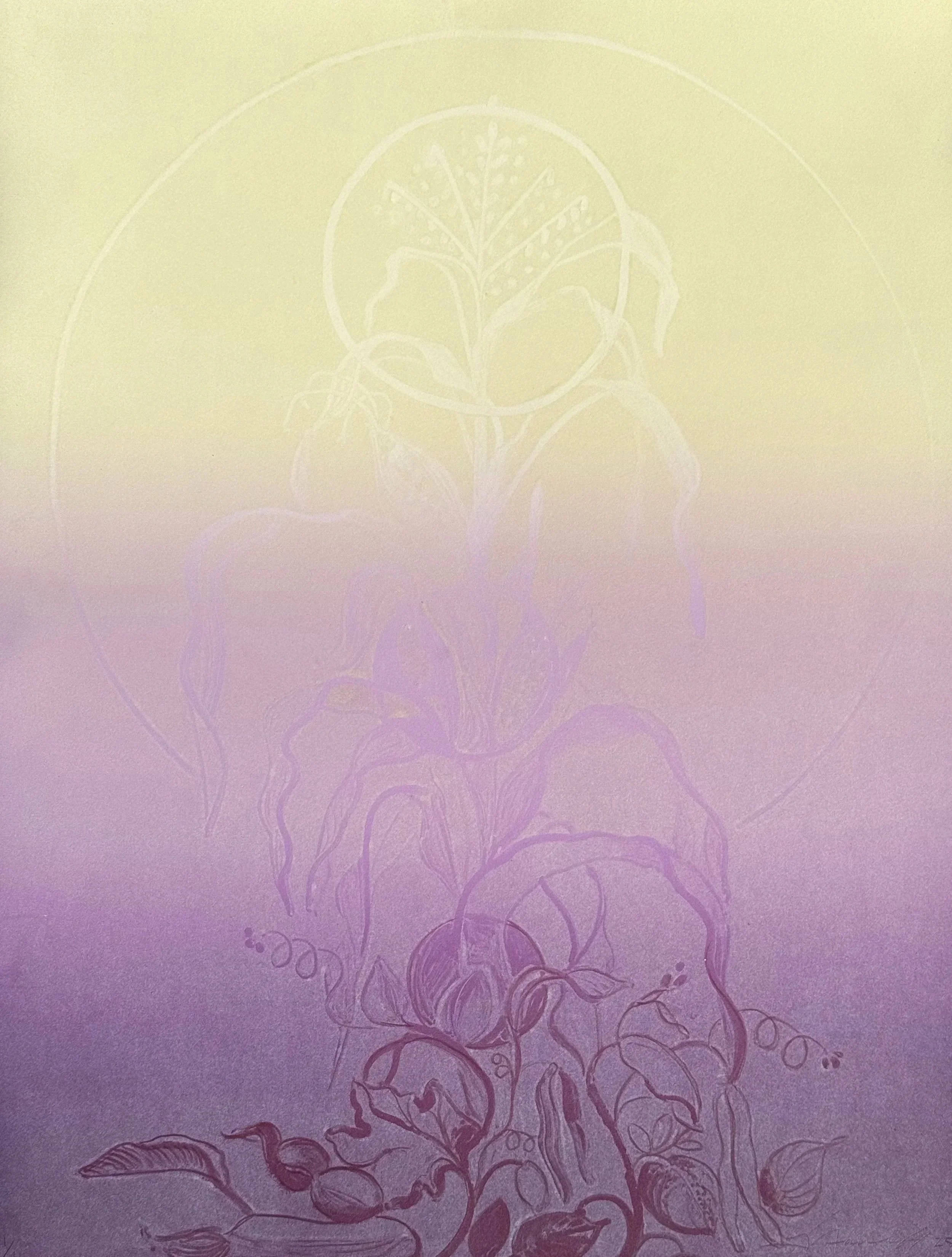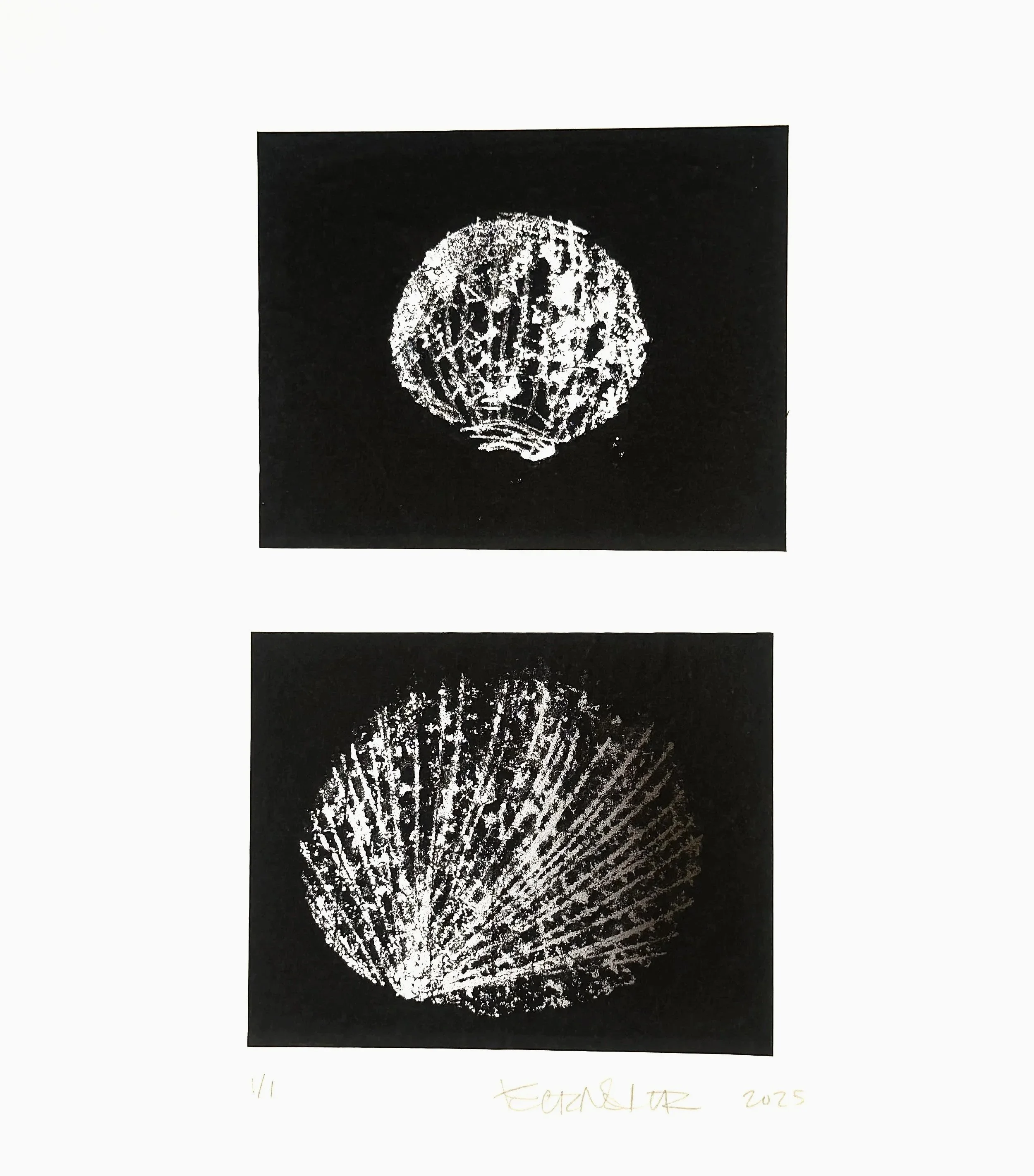 During the month of August 2025, 7 artists came to Chroma Printmaking Residency to work with in-house printer, Kristin Sarette, to create small series of monotypes and monoprints. These works are being sold as a fundraiser for the Friends of Chroma Scholarship program. Our goal is to make accessibility to the residency easier to achieve. With your help, we will be able to offer a more robust curriculum of residencies, workshops, and symposia.